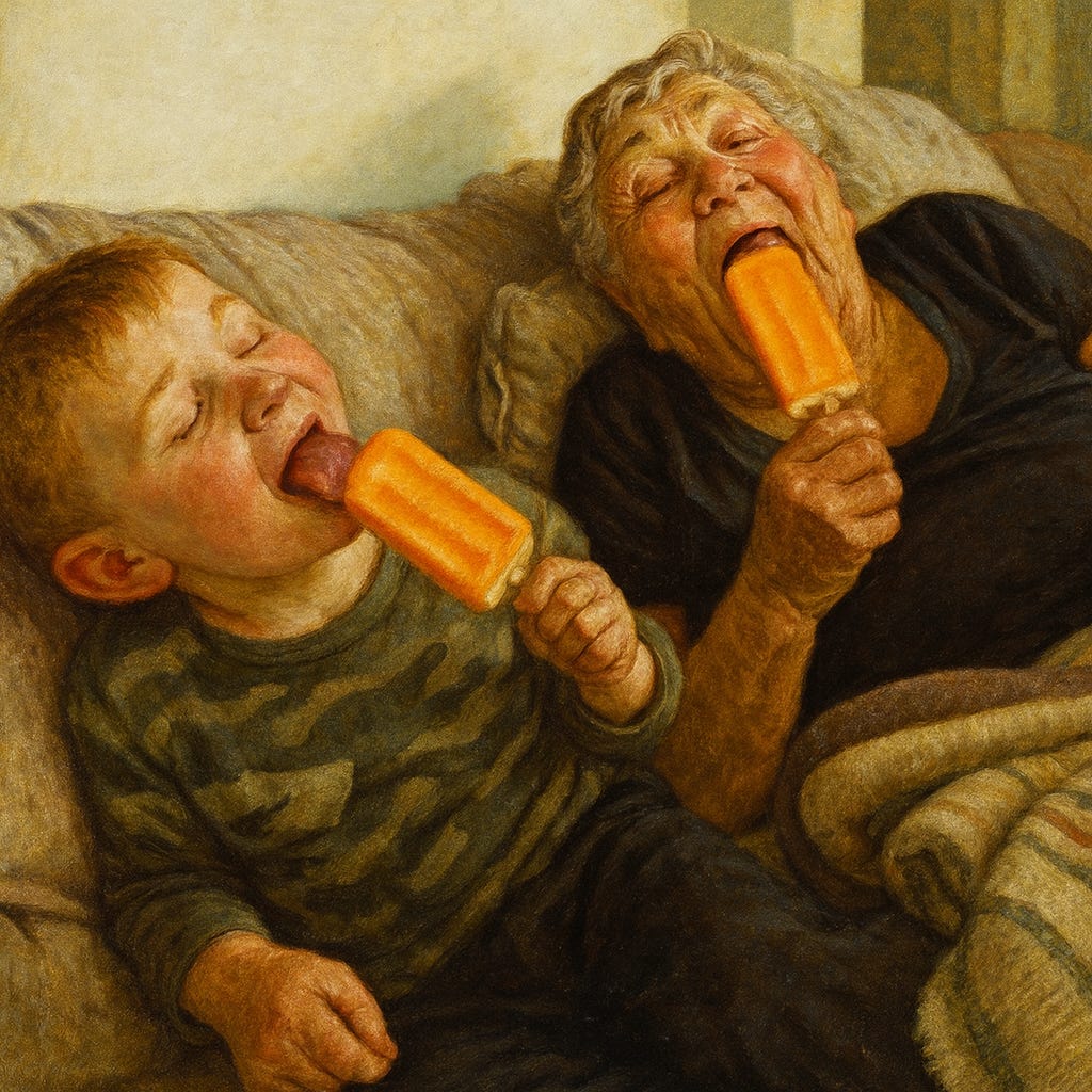 As I watched Mason and Nana wake up from their shared nap — two dreamers from opposite ends of life’s timeline — I felt the quiet truth of it all. These are the moments that stitch generations together. I see the whole arc of a family, the wisdom of a life well‑lived meeting the wonder of a life just beginning. Grandparents give children a sense of where they come from; grandchildren give grandparents a glimpse of where we’re going. And great grandparents—well, that’s a whole ‘nother kind of magic.